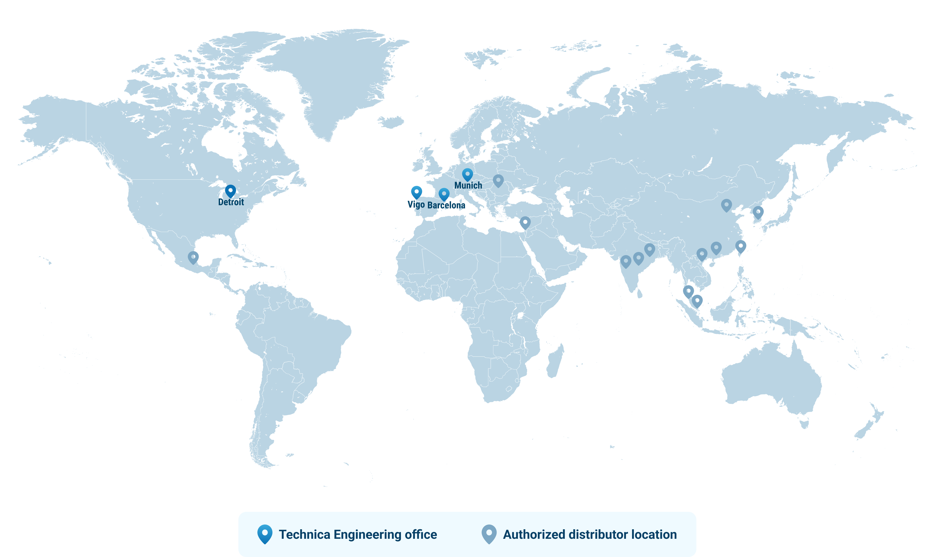 Unsere Niederlassungen und Vertriebspartner helfen uns, eine globale Präsenz dort aufzubauen, wo sich unsere Kunden befinden, und unsere Produkte und Lösungen in zahlreichen Ländern und auf verschiedenen Kontinenten bereitzustellen.